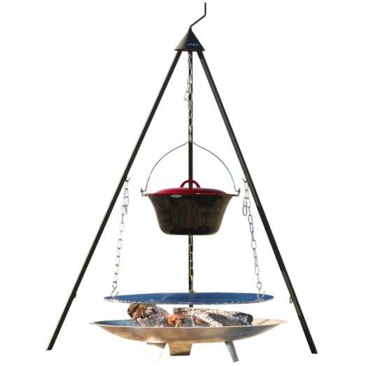 Bon-Fire basissæt kommer med den solide gryde, der er en tilbehørsdel til det mobile, bålkøkken. Gryden kan rumme 6 liter og er produceret i et kvalitetssikkert materiale, der beskytter din mad mod flammerne, hvilket giver dig mange tilberedningsmuligheder, alt fra grønsager, suppe til sammenkogte retter. Bon-Fire basissættet er et godt alternativ til den traditionelle både at grille på.