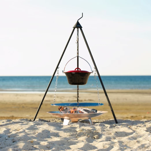 Med dette basis bålsæt er du ikke længere begrænset til det traditionelle snobrød eller skumfiduser, men kan invitere familie og venner på et komplet måltid. Du kan med fordel medbringe det mobile, udendørs køkken til sommerhuset, stranden eller til andre udendørsture.