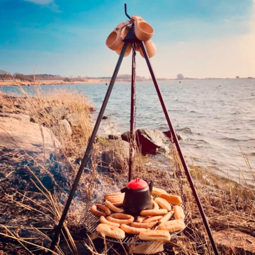 Med dette basis bålsæt er du ikke længere begrænset til det traditionelle snobrød eller skumfiduser, men kan invitere familie og venner på et komplet måltid. Du kan med fordel medbringe det mobile, udendørs køkken til sommerhuset, stranden eller til andre udendørsture.