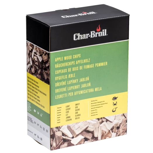 Passer godt til kylling, fisk og lam. Rygeflis bruges til at få røget dit kød, fisk eller fjerkræ. Du kan bruge en Char-Broil rygeboks til at lægge rygeflisen ned i og derefter på grillen. Char-Broil æble rygeflis giver din mad en mild røg med en let sødlig og frugt smag.