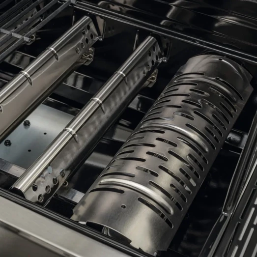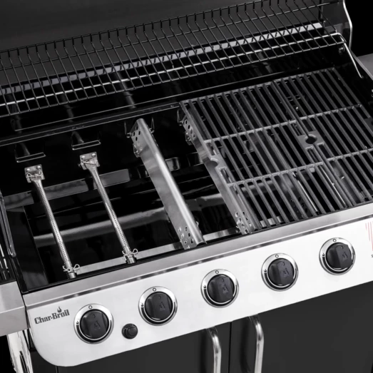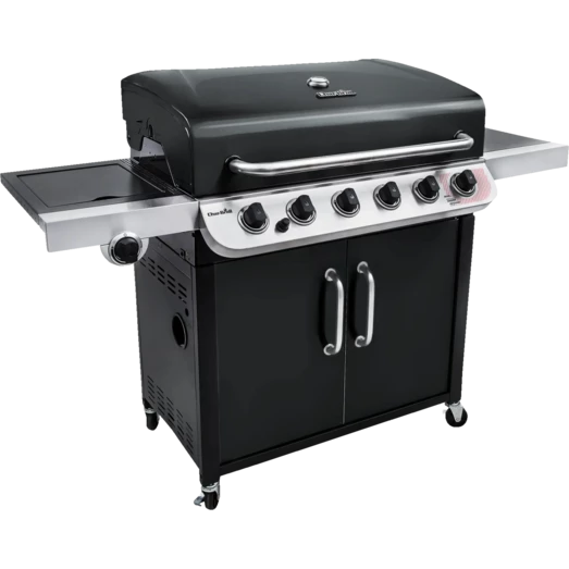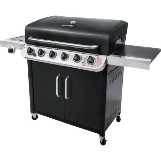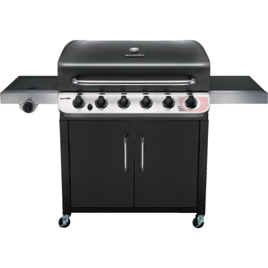 Klassisk ekstra stor gasgrill med 6 brændere, Sear Station og sidebrænder, perfekt i både hverdag og når der skal grilles for gæster. Grillen er meget stabil samt nem at flytte pga. de fire hjul. Grillen har sidebrænder med fladt låg, sidebord, rustfrit frontpanel og sort emaljeret låg med indbygget termometer, brødhylde, elektronisk tænding, samt grillriste i støbejern. Både brændere og flammetæmmere er lavet i rustfrit stål. De 5 rustfrie brændere brænder i toppen, hvilket giver bedre temperaturkontrol over grillen. Frontpanelet samt frontlåger er lavet i rustfrit stål. Bag de to låger på fronten er der et stort opbevaringsrum. Grillen er udstyret med Sear Station som giver mulighed for at grille ved ekstra høj varme – perfekt når bøffer og andet skal have flotte grillstriber og stegeskorpe.