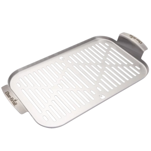 Char-Broil® GRILL+ Grillbakke tilbereder nemt fisk, skaldyr, grønsager m.m. Grillbakken griller nemt små stykker mad der eller ville falde gennem grillristen. Brug grillbakken sammen med Grill+bradepanden og få flere muligheder for tilberedelse af mad Grillbakken er lavet i rustfrit stål og kan tåle opvaskemaskine