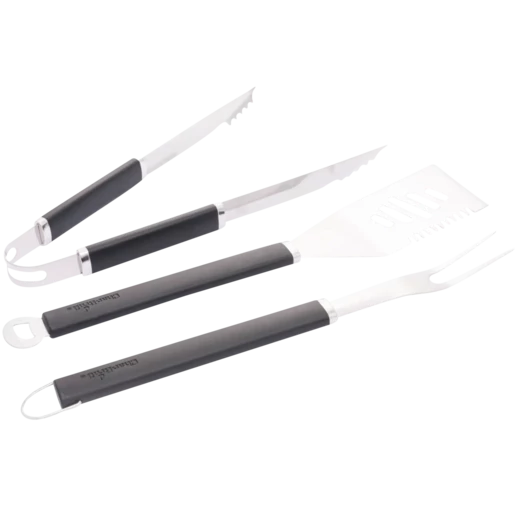 Indeholder paletkniv, tang, og en gaffel. Udført i kraftig kvalitet. Redskaberne er lavet i rustfrit stål og kunststof Tåler opvaskemaskine.