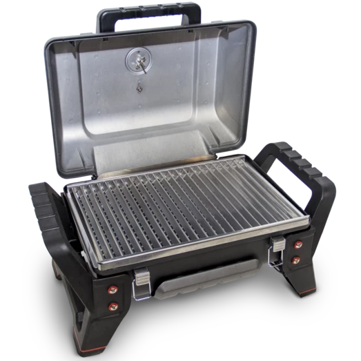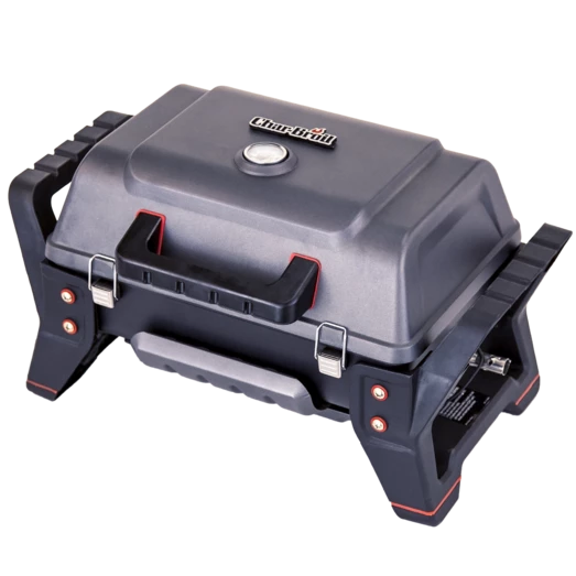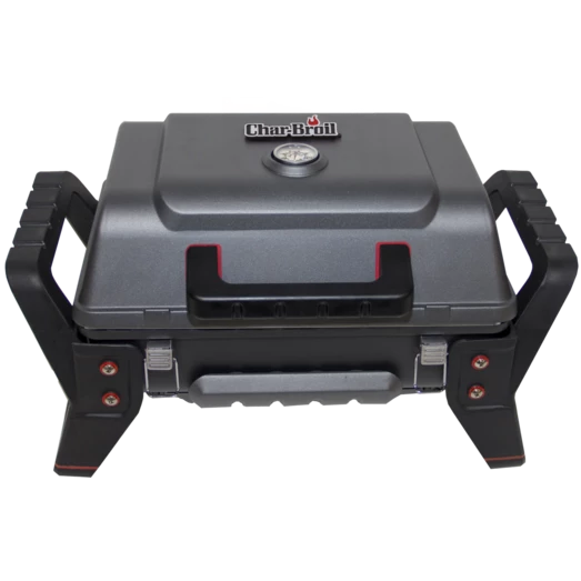 Charbroil X200 – Grill2GO er en praktisk og meget stabil gasgrill med en brænder i rustfri stål på 2,8 kWh. Låget og bunden er fremstillet af aluminium. De kraftige bærehåndtag og hængsler gør grillen sikker og nem at transporterer. Grillen har indbygget termometer i låget, trinløs regulere ring af varmen samt tænding ved tryk på knap. Under grillen er placeret en udtagelig drypbakke. Grillen har CharBroil’s TRU-Infrared grillsystem som sikrer et minimalt forbrug af gas og et perfekt grillresultat. Charbroil X200 bruger små engangs gasdåser (leveres ikke med). Grillen leveres samlet