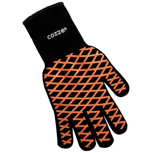 Cozze pizzahandske er et uundværlig stykke udstyr for pizzakokken. De beskytter dine hænder og sikre dig et fast og solidt greb om grilltilbehør og -redskaber. Handsken tåler temperature op til 350°C og passer både til højre og venstre hånd og er udtyret med langt skaft.