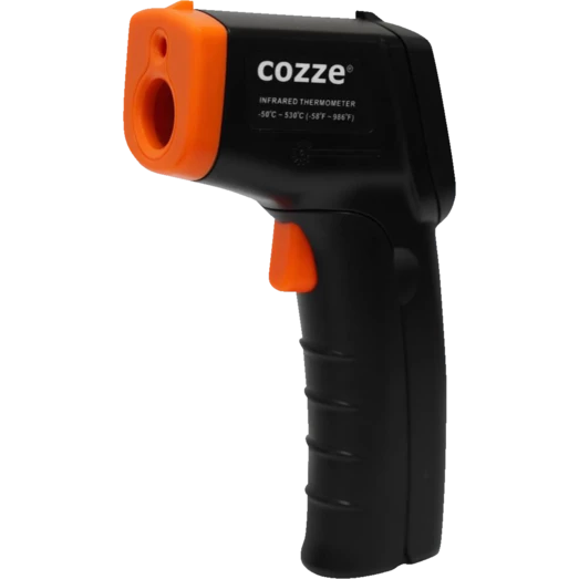 En af de mange fordele ved infrarøde termometre er, at du ikke påvirker måleresultatet idet hele temperaturmålingen foregår digitalt og trådløst. Udover det ikke sætter mærker, giver det en hurtig indikation af temperaturen, som også kan måles på ujævne overflader som madvare jo ofte kan have. Der anbefales at grille pizzaer med overflade temperaturer fra 350°C og op til 400°C