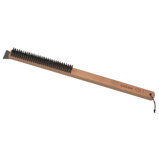Cozze stålbørste med rustfri skraber i enden er et nødvendig redskab til afrensning af pizzasten, på den måde holder du overfalderne appetitlige. Børsten er forsynet med læderstrop til ophængning . Stålbørsten kan også anvendes som tilbehør til grilning mv. Som en ekstra feuture