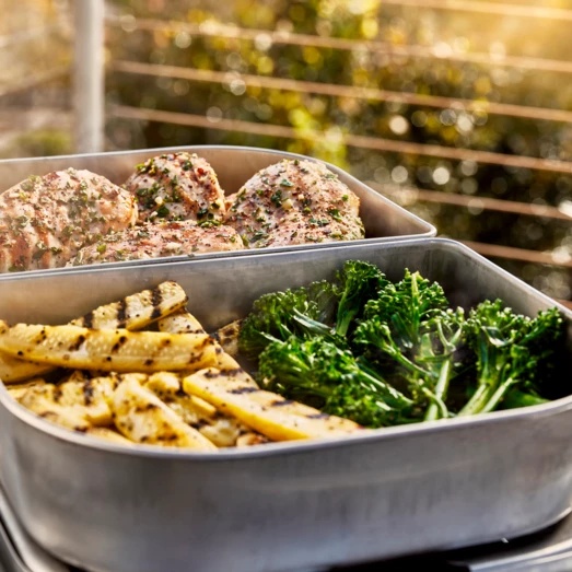 Få endnu flere muligheder med din Lumin* Compact-elgrill med multi-kittet i 4 dele. Multi-kittets beholder, der har to funktioner, udvider grillens damp- og smokerfunktion til at dække hele grillfladen. Det opgraderer din Lumin-grills evne til at skabe røginfusion, så den fungerer a la en elektrisk smoker. Med dine foretrukne Weber-røgflis kan du tilberede lækre, langtidsgrillede favoritter såsom spareribs, nakkefilet (pulled pork) og spidsbryst (brisket). Kittet giver dig også mulighed for at dampe friske grøntsager og hele fisk eller hummer. Og når det er tid til at spise, kan gæsterne nyde måltidet takket være kittets to fade, som du lægger maden i, så grillen kan holde den varm i timevis ved den helt rigtige temperatur – uden at brænde på eller blive tør. Indeholder: Damp-/smokebeholder, vendbar dampbakke og fade (2). *LUMIN er et varemærke tilhørende Weber-Stephen Products LLC og afventer registreringer eller ansøgninger i USA og andre lande.